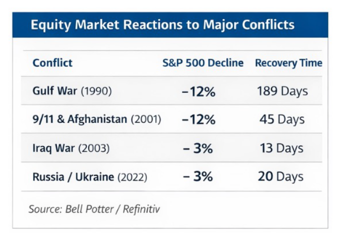 But history suggests that the start of a conflict is rarely a catalyst for a prolonged sell-off. Well-diversified portfolios, held with discipline through periods of uncertainty, consistently produce better outcomes than those managed reactively.